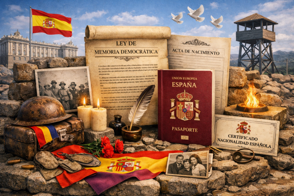 La ley de memoria democratica, permite a miles de descendientes de españoles obtener la nacionalidad por vía excepcional, promulgada en octubre de 2022, esta ley reconoce el derecho a la nacionalidad española a personas vinculadas con el exilio y la represión sufrida durante el franquismo. Es una ampliación de la Ley de Memoria Histórica de 2007, con criterios inclusivos.
